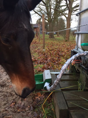 Dem Stadtmenschen mag das egal sein. Nicht jedoch uns Landeiern, die wir auch noch Pferde halten. Hier wird die andauernde Kälte zu folgendem Problem: Pferde haben viel Durst. Sie trinken mehrere zig Liter Wasser am Tag, besonders, wenn sie im Winter nonstop Heu fressen. Und wenn das Wasser in der Tränke gefriert, kann man als Pferdebesitzer in den kalten Tagen fünfmal am Tag mit Eimern hinausrennen und die Pferde tränken. Oder man baut sich eine winterfeste Tränke, die auch den schlimmsten Temperaturen standhält. Ich spreche hier nur von den schlimmsten norddeutschen Temperaturen - in Sibirien würde unser System wahrscheinlich nicht bestehen.